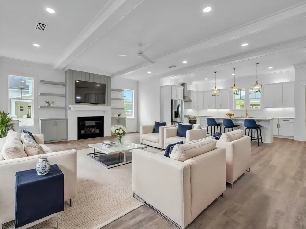 MOVE IN READY! Welcome to this exquisite 4-bedroom, 2.5-bathroom home with an office featuring custom built-ins and a versatile flex space upstairs, located in the highly sought-after Deer Moss Creek community. From the moment you arrive, you are greeted by a charming wraparound front porch, perfect for relaxing or enjoying your morning coffee. The large, oversized rear porch offers ample space for outdoor entertaining and family gatherings.Step inside to a spacious living area that exudes warmth and comfort. The gas fireplace, framed by built-ins, creates a cozy focal point, while the expansive island in the kitchen invites gatherings and meal prep alike.
