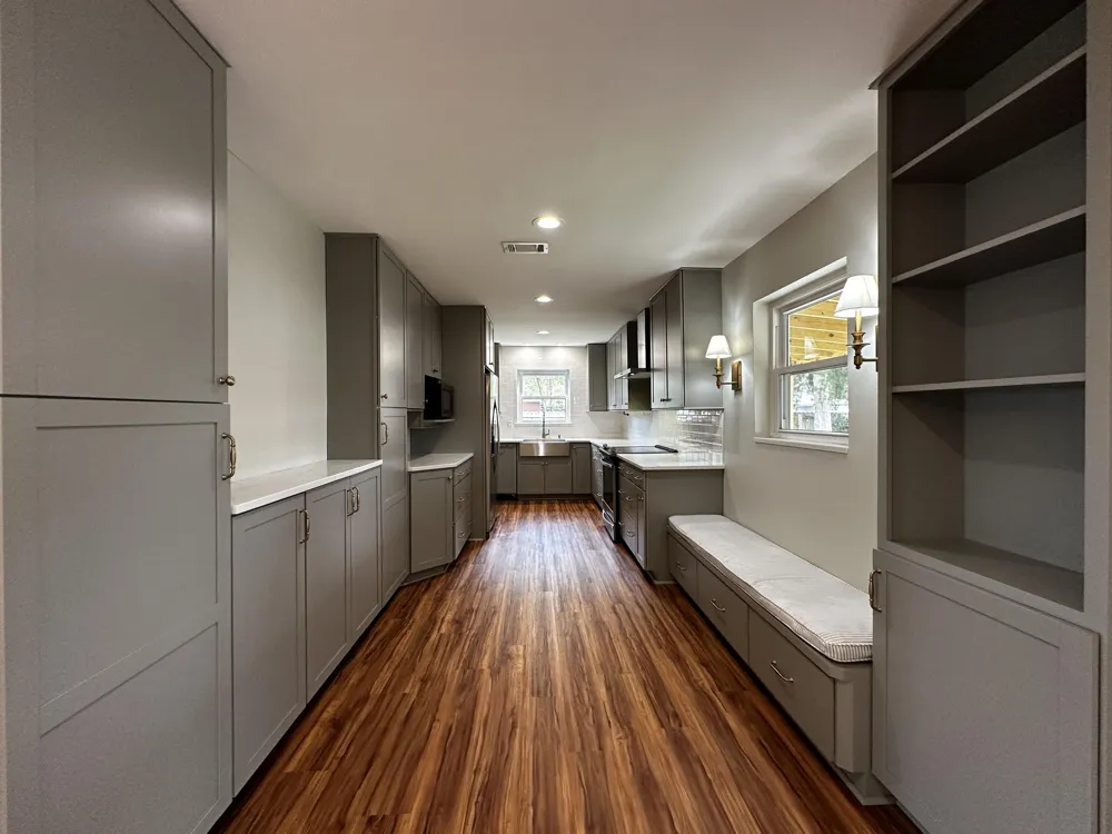 VA Assumable at 2.375%! The home welcomes you into a spacious living area featuring durable, rustic-style luxury vinyl plank flooring throughout. An open-concept layout flows seamlessly into the dining area and chef-inspired kitchen, showcasing quartz countertops, classic shaker cabinetry, stainless steel appliances, a farmhouse sink, and a custom built-in reading bench that adds both charm and function. Just off the kitchen, a versatile mudroom provides space for stackable laundry and a dedicated coffee or beverage station. A central hallway leads to generously sized guest bedrooms, a fully renovated hall bath, and an oversized primary suite complete with a completely upgraded en-suite bathroom. The finished two-car garage offers ample storage with built-in cabinetry.